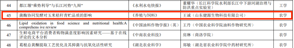 發(fā)布時(shí)間:[2025-1-15 17:6:25] 瀏覽量:3274次2024年12月31日,由湖北省科學(xué)技術(shù)協(xié)會指導(dǎo),湖北省科學(xué)技術(shù)期刊編輯學(xué)會組織實(shí)施的2023年度湖北省科技期刊百篇優(yōu)秀論文遴選結(jié)果公布,經(jīng)過評選,山東健源生物科技有限公司董事長王誠帶領(lǐng)研發(fā)團(tuán)隊(duì)撰寫的《菌酶協(xié)同發(fā)酵對玉米秸稈青貯品質(zhì)的影響》論文入選2023年度湖北省科技期刊百篇優(yōu)秀論文。